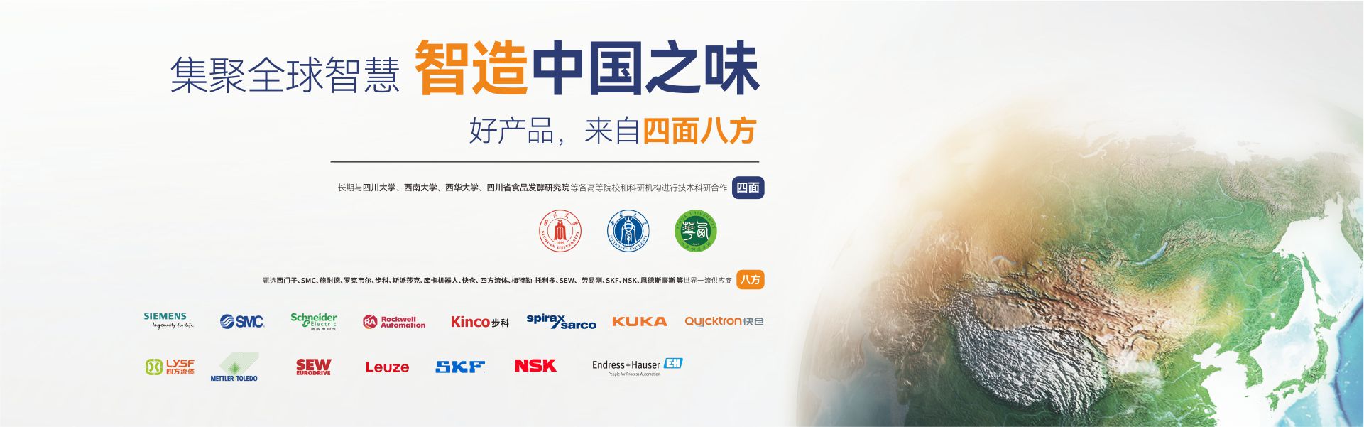 成都海科機械設(shè)備制造有限公司(簡稱:成都海科)是一家集研發(fā)、生產(chǎn)、銷售、服務(wù)為一體,專注為中國傳統(tǒng)食品行業(yè)提供自動化、智能化、數(shù)字化、智慧工廠整體解決方案的國家級高新技術(shù)企業(yè)。公司擁有標(biāo)準(zhǔn)化辦公樓及現(xiàn)代化生產(chǎn)車間約42000m2,具有較強的綜合研制、設(shè)計開發(fā)、生產(chǎn)能力,具備嚴(yán)格的質(zhì)量管理體系和完善的售后服務(wù)體系。公司業(yè)務(wù)范圍覆蓋:復(fù)合調(diào)味品智能生產(chǎn)線、中式醬鹵肉制品智能生產(chǎn)線、醬腌菜智能生產(chǎn)線、智慧餐廚、央廚預(yù)制菜調(diào)理智能生產(chǎn)線,與海底撈、天味、九毛九、聚慧、楊國福、絕味、雙匯、新希望、無窮、烏江、吉香居、仲景、李記樂寶、Tyson、益海嘉里、開小灶、老鄉(xiāng)雞等眾多知名企業(yè)合作。截止目前,成都海科已經(jīng)助力超2000+企業(yè)順利投產(chǎn)5000余條生產(chǎn)線,為客戶創(chuàng)造年產(chǎn)值超1000億元!